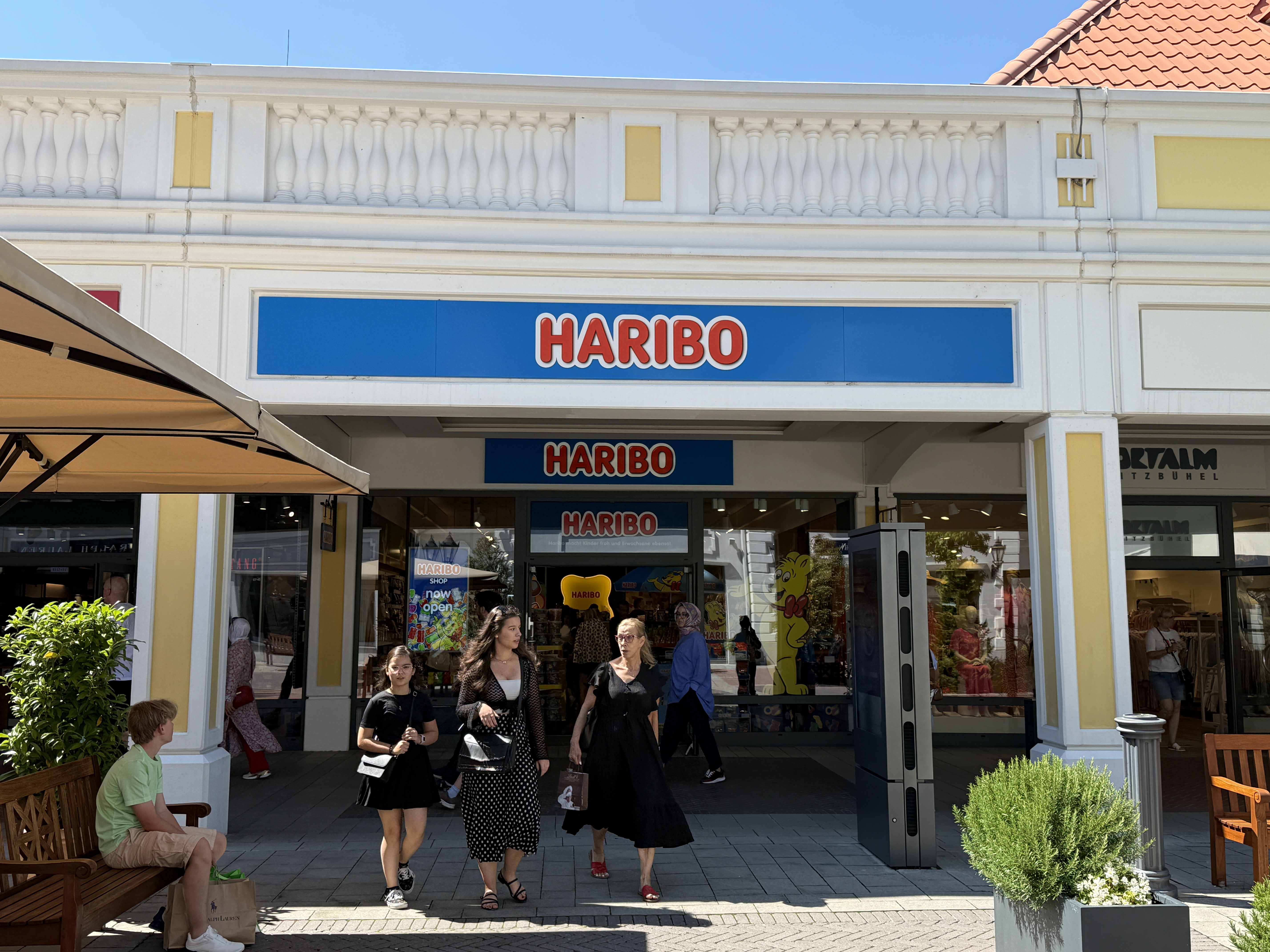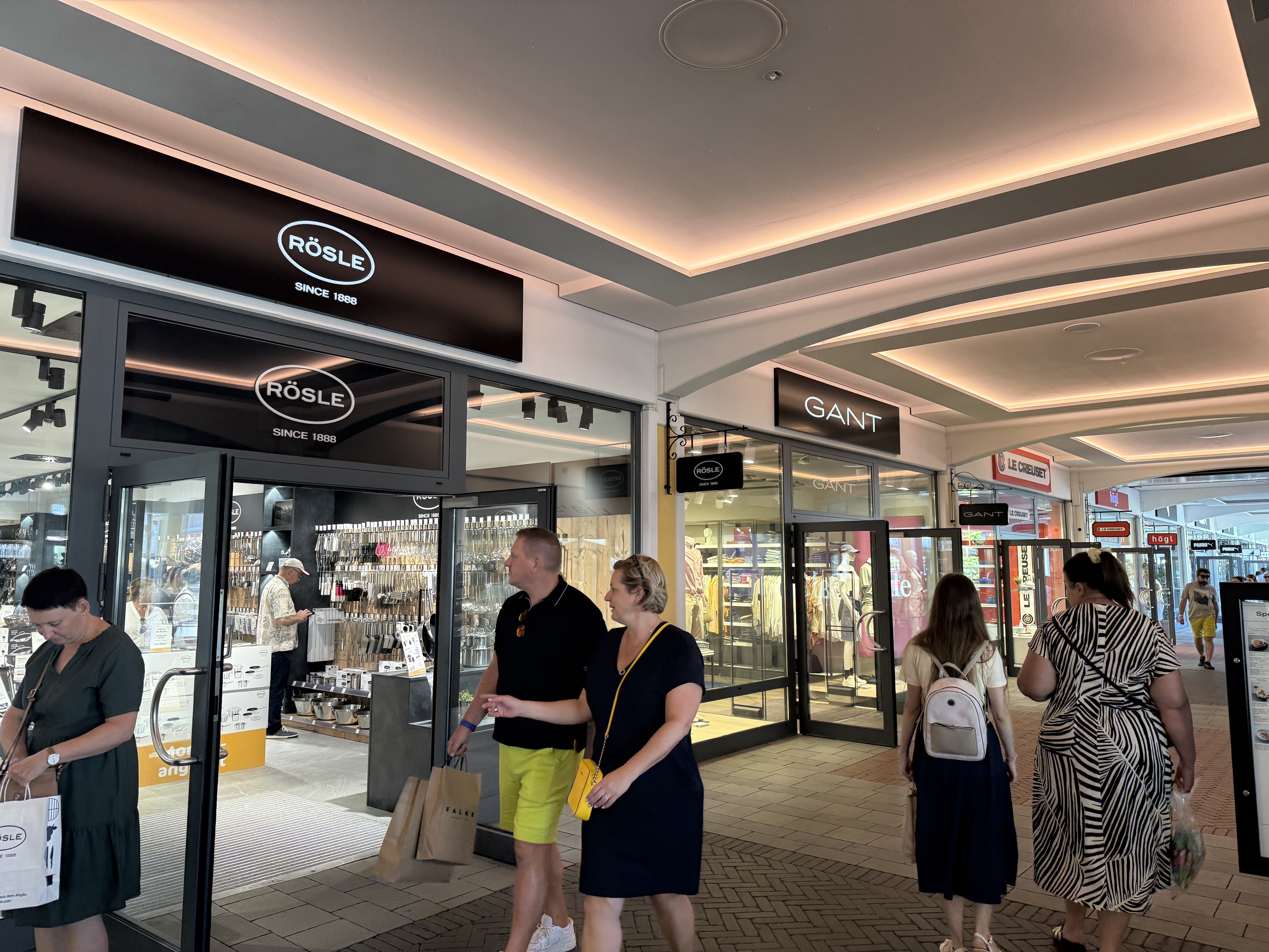 입구 쪽은 아울렛의 ‘맛집 거리’다. 버거킹, 와가마마, 스타벅스 같은 친숙한 글로벌 브랜드가 줄지어 있고, 그 옆으로 조금만 이동하면 나이키, 아디다스, 게스 등 대중적인 패션 브랜드들이 손님을 맞는다. 식사하기 좋은 식당과 의류 브랜드 뿐 아니라 가족 단위 여행객의 구미를 당기는 매장이 많이 입점해있다. 하리보, 매너 웨하스, 린트 초콜릿 등 유럽의 유명 디저트 매장들이 크고 화려하게 자리잡아 아이들의 발길을 잡는다. 뿐만아니라 리츄얼, 로레알 같은 뷰티 매장과 여러 그릇·냄비 브랜드 매장들도 있어 어른들의 쇼핑 욕구를 자극하기도 한다.